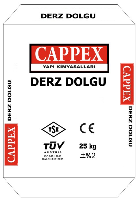 Karıştırma: Malzeme yalnızca su eklenmek suretiyle kullanıma hazır hale gelir. 20 kg CAPPEX DERZ 6,4 – 6,8 lt suya boşaltılır. Karışım homojen hale gelinceye kadar yavaş devirli bir matkap yardımıyla karıştırılır. Hazırlanan karışım istenilen kıvama geldiğinde 5 dakika dinlenmeye bırakılıp tekrar karıştırılır. Karışım, yatay ve düşey uygulamalarda lastik mala vasıtasıyla yüzeye uygulanır.