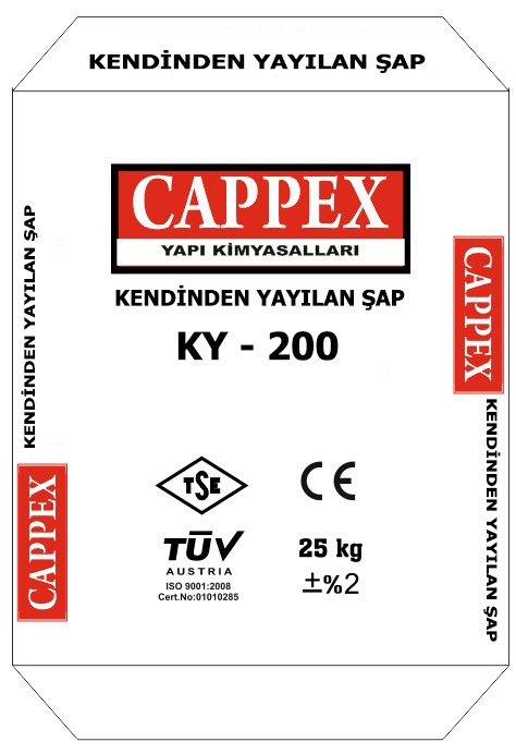 CAPPEX KY-200 tek bileşenlidir. Homojen karışımı sağlamak için düşük devirli bir matkap ve karıştırıcı uç kullanılması tavsiye edilir. Kovaya 6,0 – 6,5 it su konulur, sonra toz malzeme yavaş yavaş ilave edilir, homojen bir karışım elde edilinceye kadar karıştırma işlemine devam edilir. Karıştırma suyunun miktarı ortam sıcaklığına bağlı olarak değişebilir. Tamamen karışmış malzeme, ortam sıcaklığına bağlı olarak 30 dakikada yayılıp düzeltilerek kullanılması gerekir.